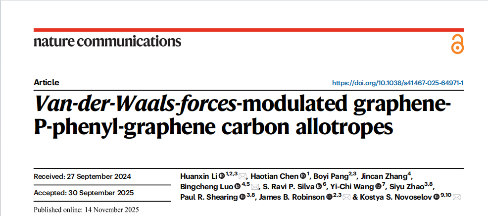 Van-der-Waals-forces-modulated graphene-P-phenyl-graphene carbon allotropes