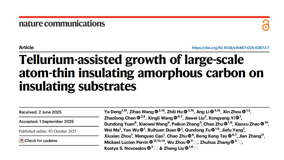 Tellurium-assisted growth of large-scale atom-thin insulating amorphous carbon on insulating substrates
